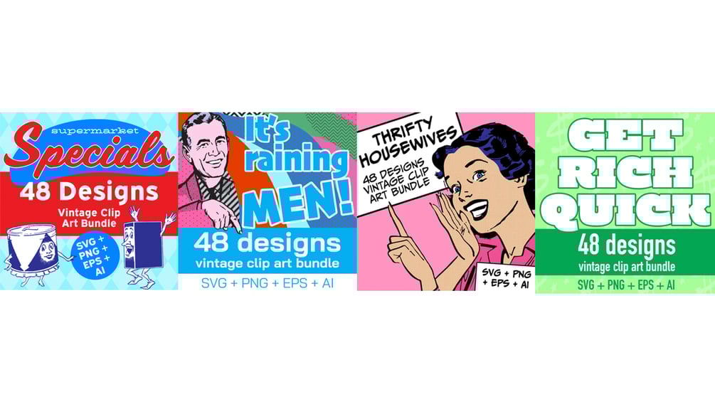 Murphaderchi vintage vector clip art bundle | "Thrifty Housewives" | 48 retro designs | SVG, PNG, EPS, AI